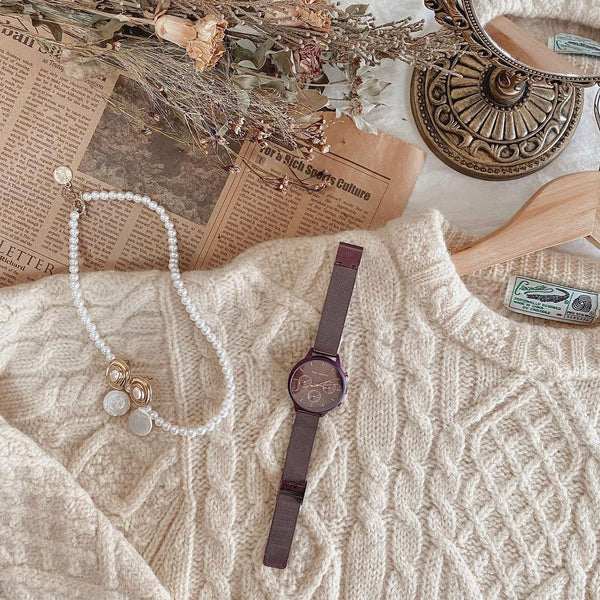 シンプルニットに合わせて、大人可愛い
